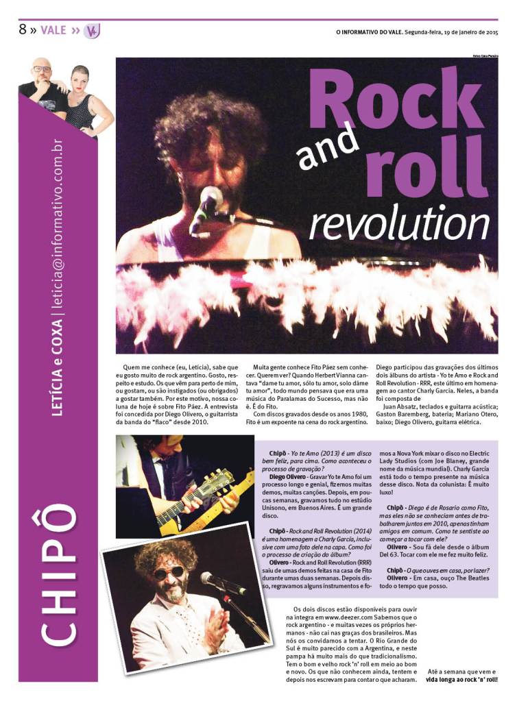 Interview and feature article as part of the Coluna Chipô series, exploring the work and cultural impact of Argentine artist Fito Páez. Published in regional press.